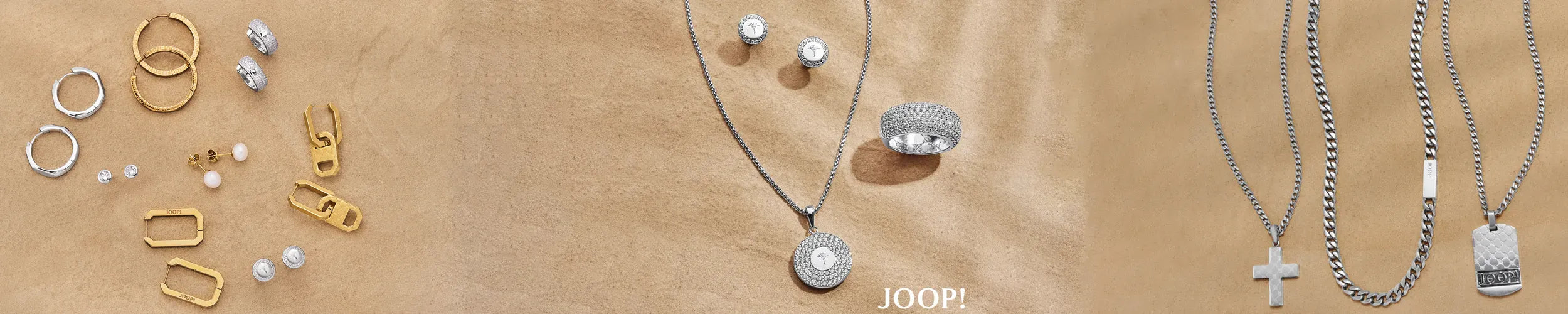 JOOP! begeistert mit edlen Materialien im ausergewöhnlichen Design. Organisch geschwungene Schmuckstücke mit üppigem Steinbesatz, aber auch pure Looks mit aufwendigem Finish setzen ausdrucksstarke Akzente. Im Herrenbereich herrscht Lässigkeit, kombiniert mit ausdrucksvoll-männlichen Statements.