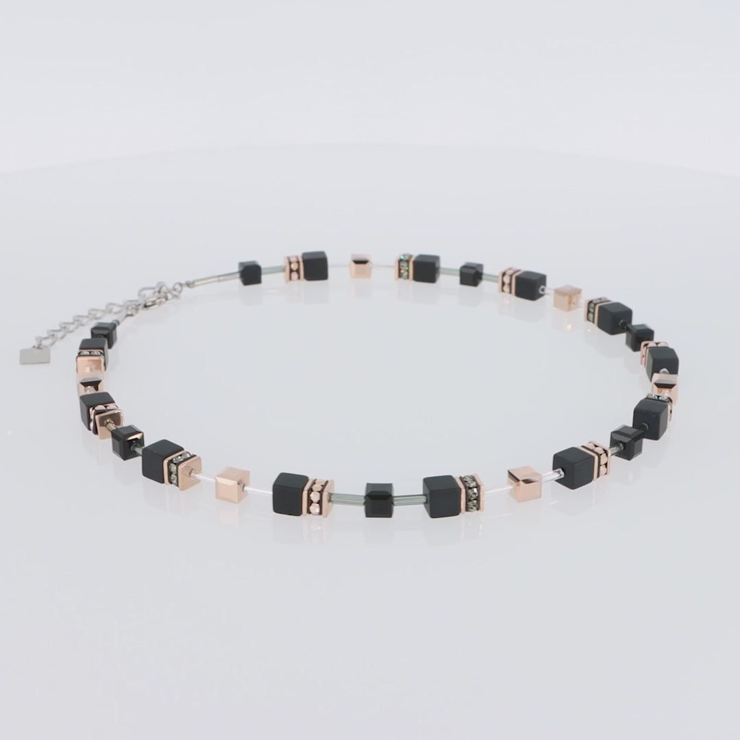 GeoCUBE® Halskette Onyx Schwarz-Roségold