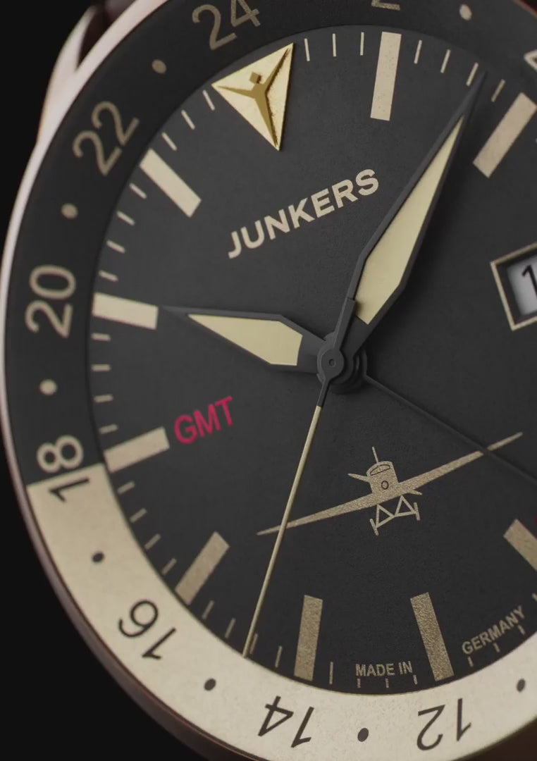 Die Fliegeruhren der Junkers-Serie sind inspiriert von den klassischen Bordinstrumenten früherer Flugzeuge – aus einer Zeit, in der man noch mit analogen Anzeigen und dem Blick zum Horizont navigierte.
