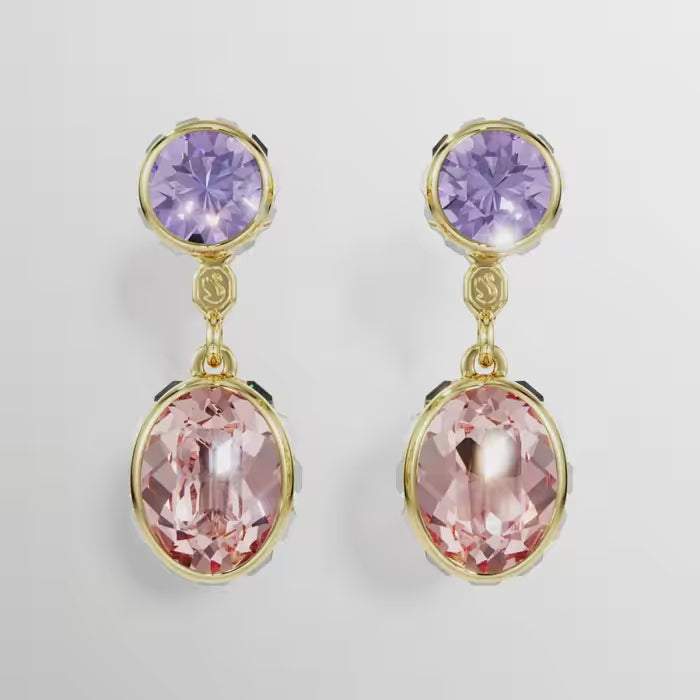 Die Swarovski Chroma Drop-Ohrhänger in elegantem Goldton setzen funkelnde Kristalle wirkungsvoll in Szene. Dank ihres wandelbaren Designs lassen sich die Ohrringe auf drei unterschiedliche Arten tragen. Sie können als dezente, lilafarbene Ohrstecker getragen oder mit den beweglichen Anhängern kombiniert werden, die auf einer Seite mit weißen Kristallen und auf der anderen mit rosafarbenen Kristallen schimmern. Geschlossen werden die Ohrringe klassisch und sicher mit Stecker und Poussette.