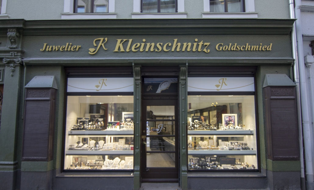 Juwelier Kleinschnitz ist ein etabliertes Juwelier- und Goldschmiedeunternehmen aus Annaberg-Buchholz, das 1967 von Joachim Kleinschnitz als reine Goldschmiedewerkstatt gegründet wurde. Nach dem Umzug in die Buchholzer Straße haben wir unser Sortiment erweitert und uns zunehmend auf den Handel mit Uhren und Schmuck konzentriert. Heute führt Michael Kleinschnitz das Unternehmen in zweiter Generation.